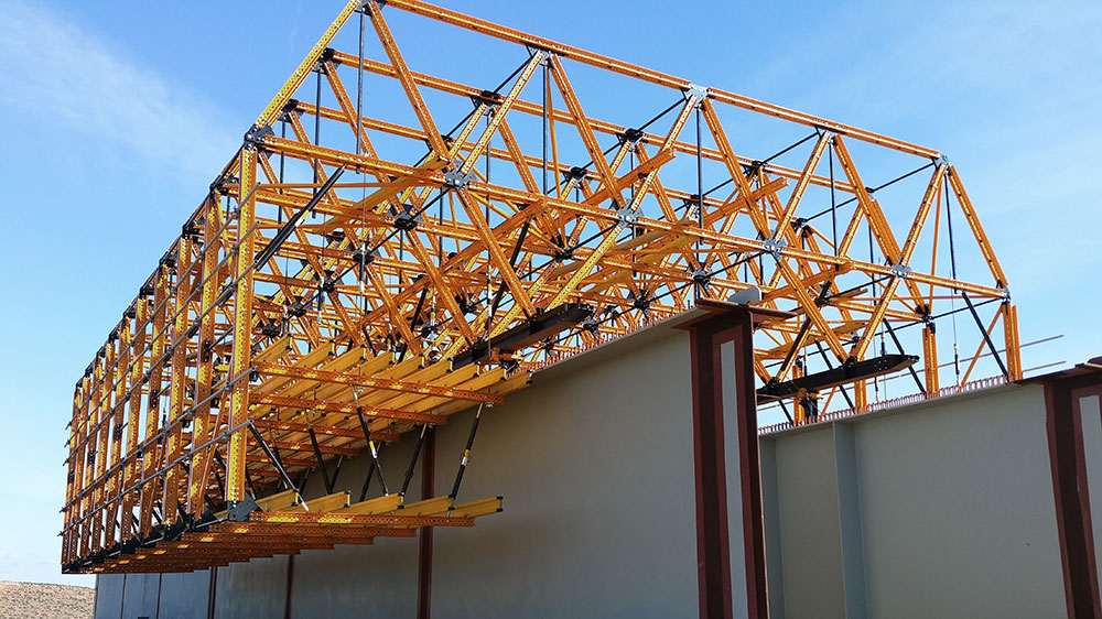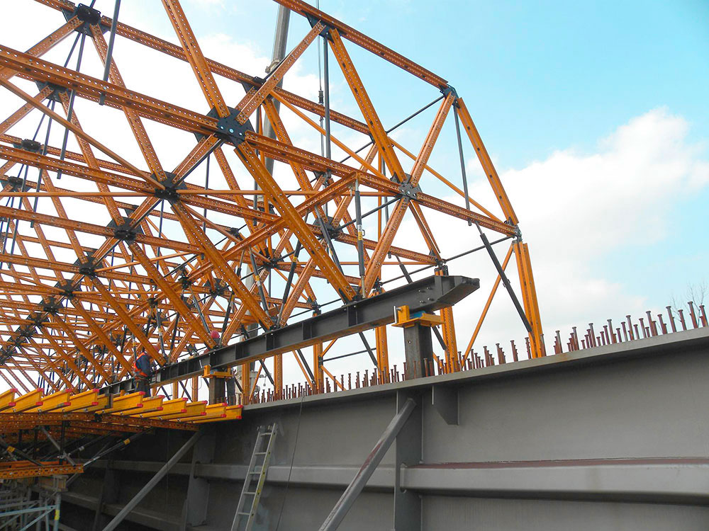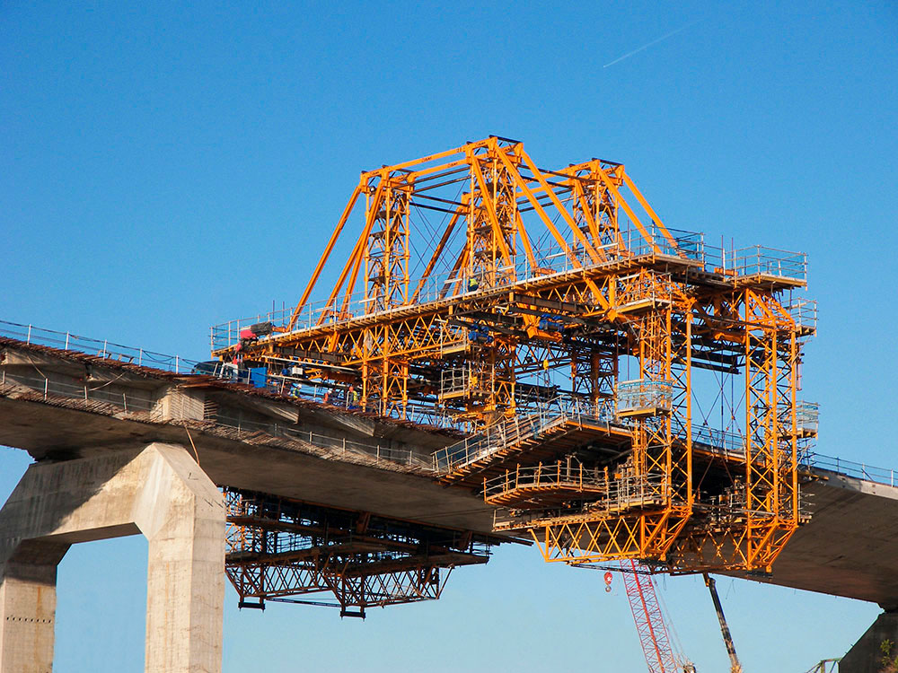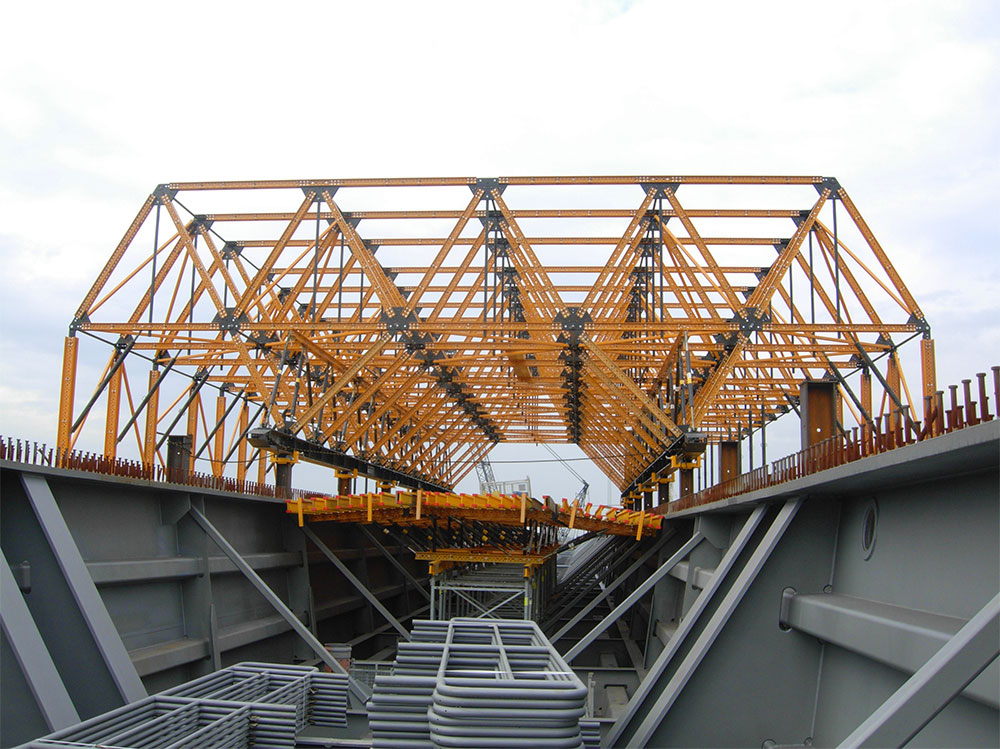 - Velikost a vzhled se liší v závislosti na konzolovém nosníku mostovky. Lehké vozíky pro bednění mostovek mohou být konfigurovány pro stavbu malých mostovek nebo těžké vozíky pro stavbu velkých mostovek.