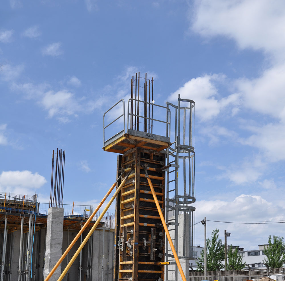 Bezpečnostní zařízení navržené pro betonování sloupů. Montáž systému může být provedena na zemi, což zaručuje maximální bezpečnost pracovníka, může být upraveno na jakoukoliv velikost sloupu. Veškeré bezpečnostní a zvedací prvky jsou zabudovány v plošině, tím ji tvoří nákladově efektivním a bezpečným systémem pro stavbu sloupů.