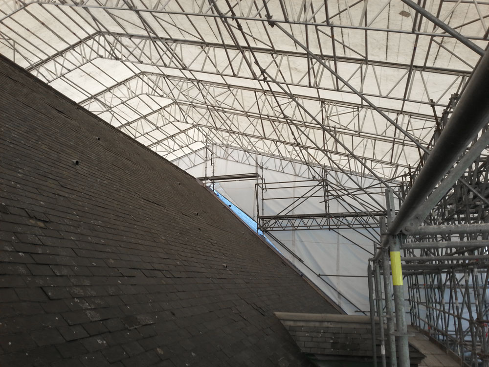 Poskytuje ochranu před deštěm, sněhem a extrémními teplotami, zatímco průběh prací není nijak omezen. Chrání chodce před pádem předmětů.