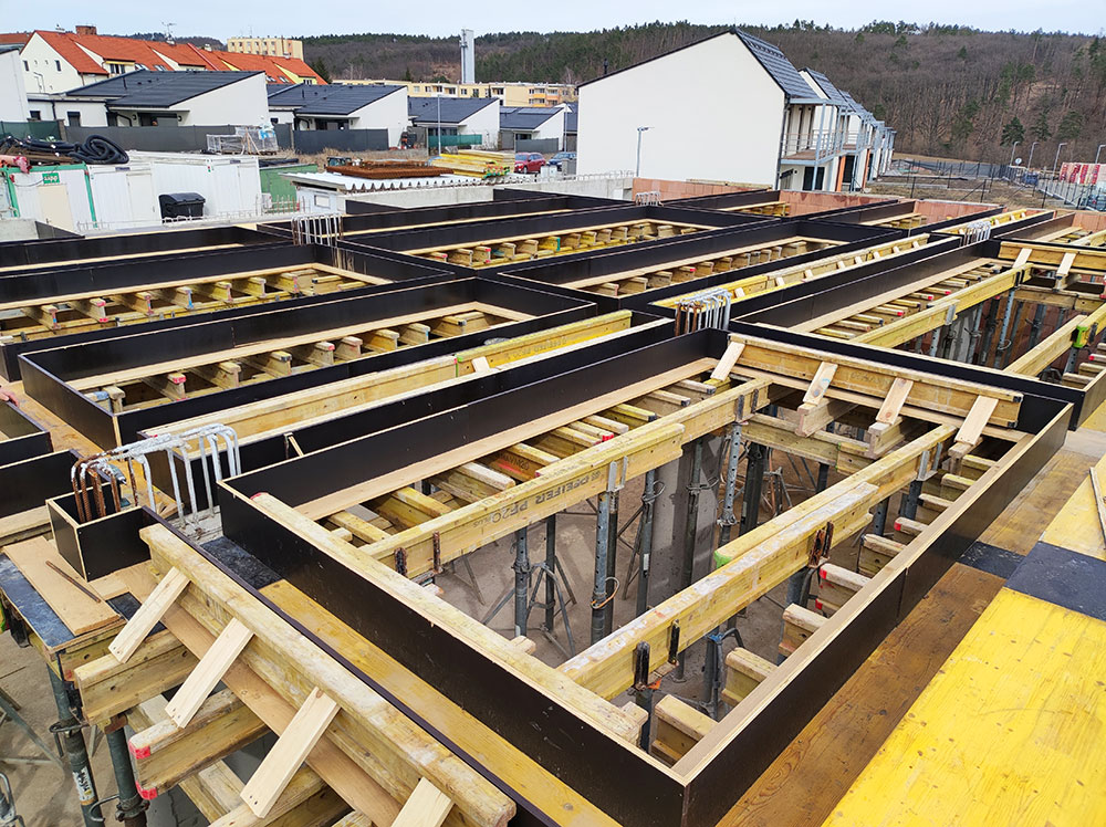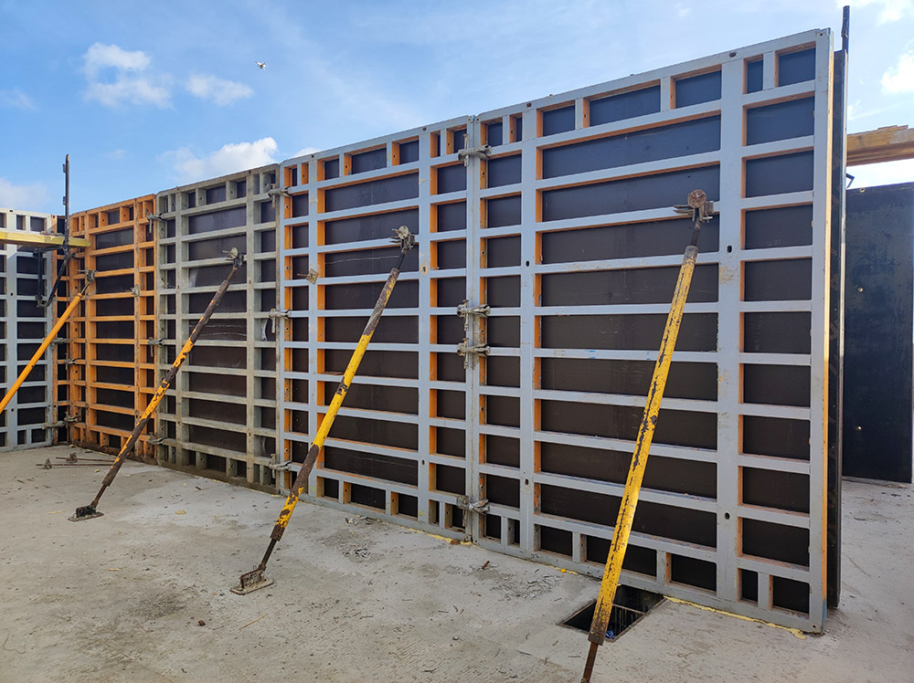Pro základové konstrukce a retenční nádrže byl z důvodu vysoké variability nasazen systém lehkého, ručního bednění LGW. Stěny byly realizovány za pomoci rámového stěnového bednění ORMA sestávajícího se z velkoformátových dílců, díky kterým bylo dosaženo kvalitní obrátkovosti a rychlého přesunu do dalších etap betonážních celků. Stěnový systém ORMA byl doplněn o prvkové bednění, které v kombinaci sloužilo jako pracovní a bezpečnostní podlaha výtahových šachet. ORMA byla také podpořena systémem šplhacích pochůzných konzol pro betonáže ve vyšších patrech objektu. Na bednění veškerých vodorovných konstrukcí se podílel systém ENKOFLEX, jímž byla vyřešena realizace stropních konstrukcí, průvlaků a ostatních monolitických překladů.