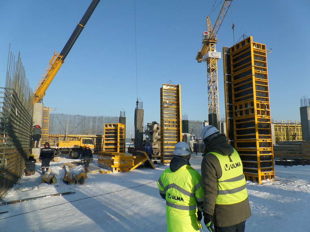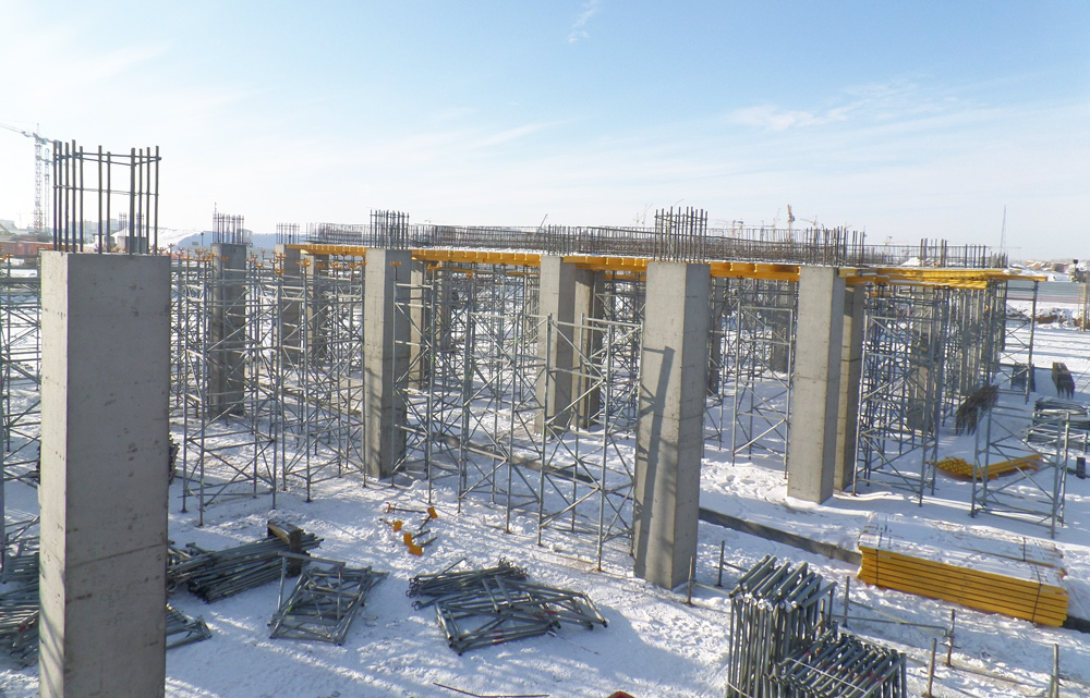 Na staveniště bylo dodáno přes 2 500 m2 stěnového bednění PRIMO, 60 sad bednění PRIMO pro tvarování sloupů a 500 sad 6,5 m vysokých podpůrných věží.