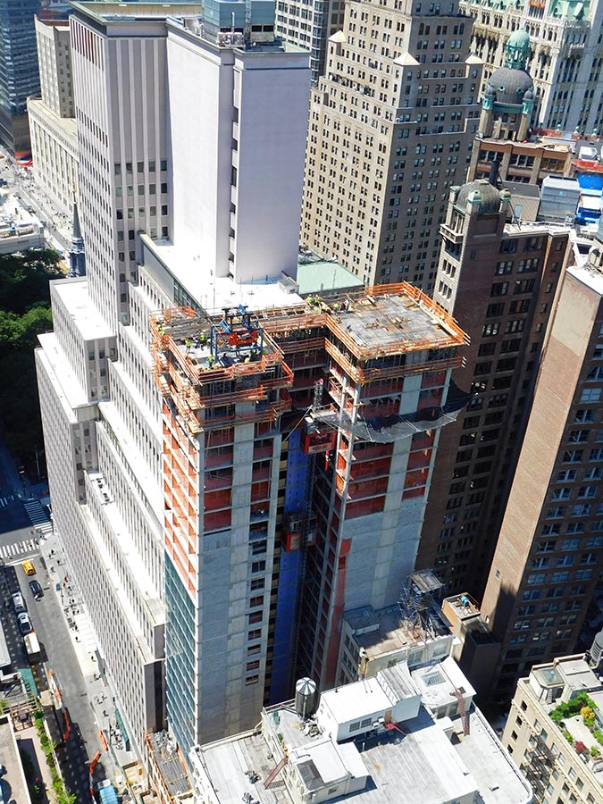 Klient si pro vylití stropů na všech 30 podlažích budovy zvolil modulové hliníkové lešení CC-4. Systémové spouštěcí hlavy jsou ideální k použití v místech, kde jsou bezpečnostní požadavky náročnější; navíc rychlé opravy materiálu snížily množství potřebného materiálu na stavbě, stejně jako závislot na použití jeřábu. Další výhodou systému je nízká spotřeba stojek na m2. To velmi usnadnilo pohyb pod stropními deskami a také přepravu materiálu, což se ukázalo jako důležitý faktor ve chvíli, kdy budova začala růst do výšky.