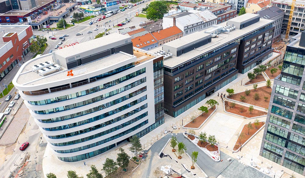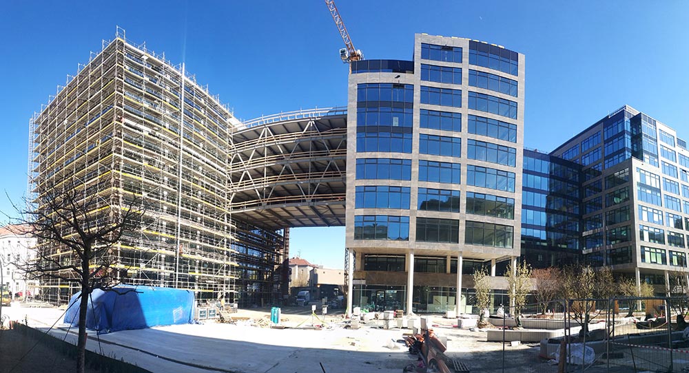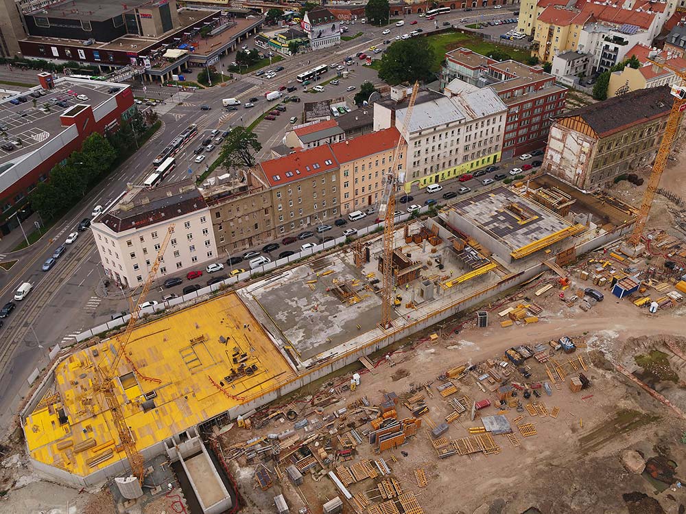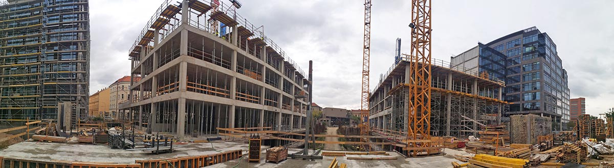 Stavba celého objektu je rozdělena do 4 částí. 3 části jsou již postaveny. Na první a třetí části spolupracovala společnost ULMA společně se SKANSKA a.s. Poslední, nejvyšší část začala v červnu 2020. V projektu byly použity prvně systémy CC-4 na stropy, které jsou díky svým patentům nejlepší volbou na stropy nad 500 m2. Systém CC-4 má nejméně postupných kroků při montáži, proto je toto bednění na stropy velmi efektivní a výhodné. Technické oddělení ULMA muselo řešit velký počet specifických detailů, které vždy vyřešila ke spokojenosti zákazníka. Jednalo se například o betonáž okrajů stropních desek, kdy se z materiálu MCC sestavil betonážní stůl, který sloužil jak na betonáž, tak i na ochranu pracovníků před pádem. Vše v souladu se standardy BOZP ULMA a SKANSKA.
