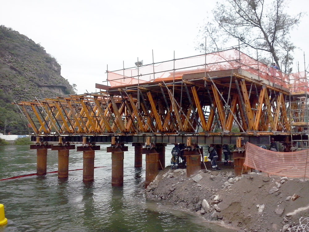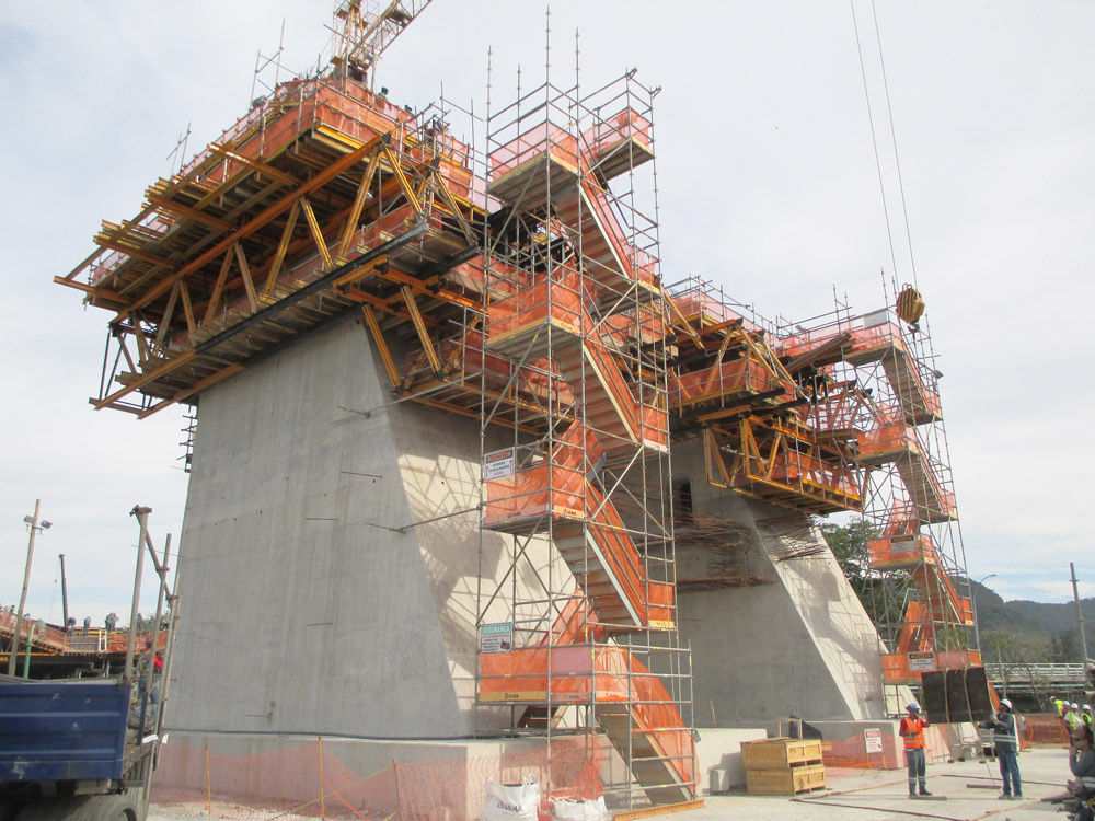 Flexibilita a výkonnost systému ATR byla pro tento projekt ideální, protože věže byly nakloněné v nestejném úhlu – 21° a 25°. Tým inženýrů ULMA navrhl řešení s párem nosníků MK na samošplhacích konzolách, zasazených do skloněných stran, který podepíral další pár MK nosníků přes dvě boční strany. Tyto čtyři nosníky tak okolo pilíře tvořily kruh s pracovními plošinami, které zvedala hydraulická zařízení na šplhacích konzolách. Díky tomuto řešení se konstrukce přizpůsobovala odlišnému tvaru každé sekce, aniž by se musela pracně rozmontovávat.