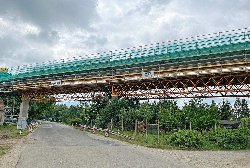 BRIO lešení založené na zemi nevyžadovalo přerušení provozu, oproti lešení zavěšenému na nosnících H-33, které vyžadovalo krátkou výluku na trati a krátké přerušení provozu na silnici.
