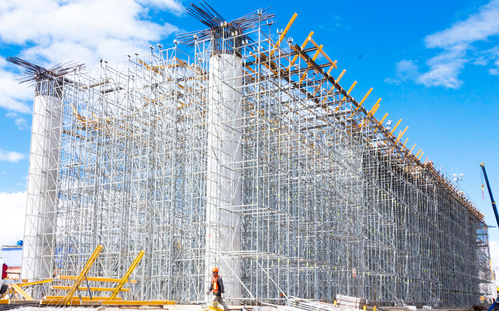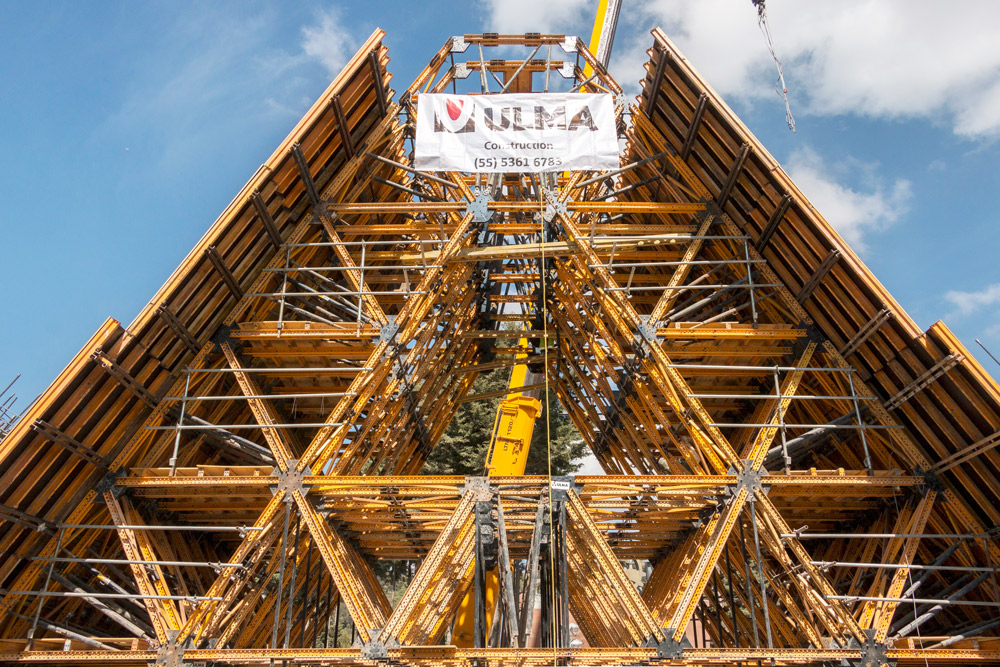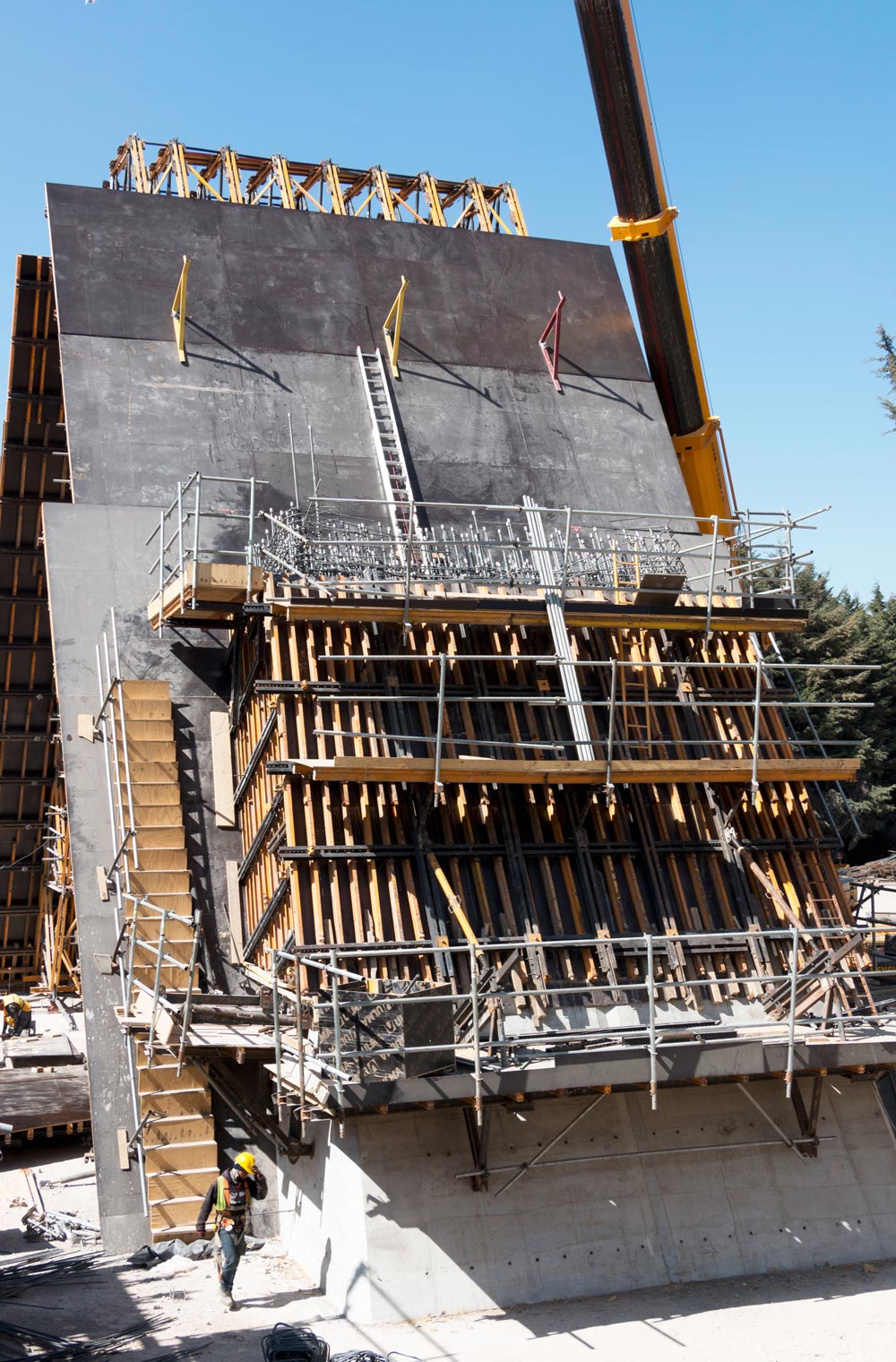 Pro práci ve výškách bylo použito lešení BRIO doplněné schody, které umožnily výstup až do výše 80 m nad zemí. Přes velký rozměr nebylo nutné konstrukci lešení před přesunem rozebírat. To významně urychlilo proces betonáže a umožnilo dodržení těch nejpřísnějších bezpečnostních norem.