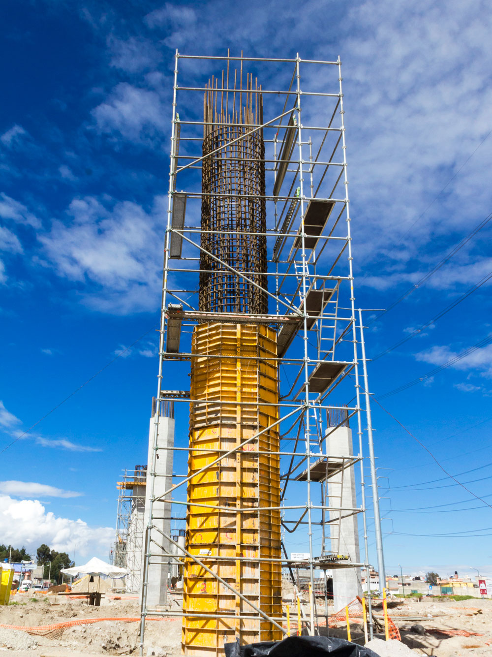 Pro duté pilíře byl použit systém šplhacích konzol CR-250 doplněný o plošiny KSP a bednění ENCOFORM V-100. Pilíře, o výšce až 74 m, byly betonovány v