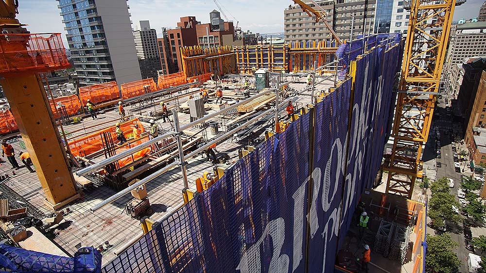 Ochranný obvodový štít HWS byl vybrán zákazníkem, aby chránil své pracovníky při provádění prací na staveništi. 36 jednotek systému HWS bylo navrženo tak, aby obklopovalo budovu a pokrývalo 4 a ½ podlaží budovy. Každá jednotka systému HWS obsahovala lávky pro přístup z konstrukce HWS do budovy. Ochranný obvodový štít byl umístěn jednoduše mezi okraje budovy a zdvihací zařízení.