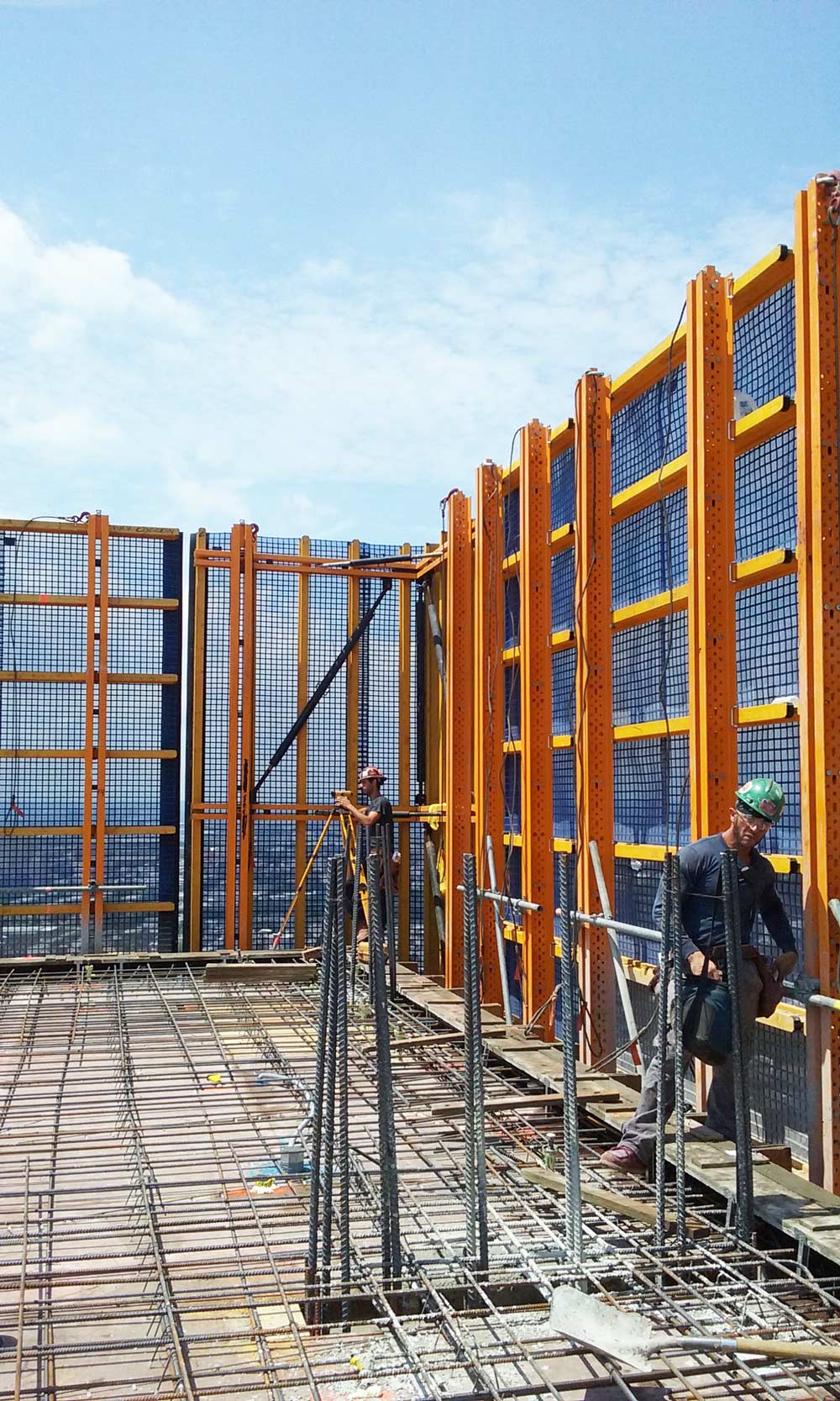 Obvodový plášť budovy pokryly zábrany HWS – bezpečnostní systém, složený z lehkých rovných panelů, které zde byly použity bez pracovních plošin. Pohyb na pracovišti tedy byl jasně vymezen a byla zajištěna dokonalá ochrana proti pádu lidí i předmětů.