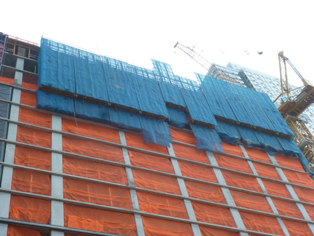 Sestava měří 13 m na výšku a 3,6 m na šířku a umožňuje různé konfigurace: jako čistě vertikální ochranný systém nebo s přidan ou pracovní plochou pro manipulaci s materiálem. Panely byly překryty zesílenou sítí k zabránění pádu osob a předmětů jakékoli velikosti. Chrán ily také rozestavěné stropní desky před větrem a nepřízní počasí, přičemž stále propouštěly dostatek světla.