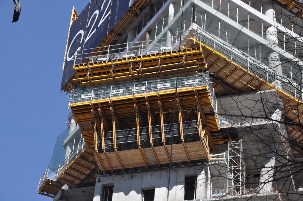 U čtvrtého jádra byly použity šachtové plošiny KSP jako tradiční šplhací systém v interiéru a samošplhací systém bednění RKS v exteriéru. V průběhu zdvihání byly soustavy vedeny po stěně. Celý systém se osvědčil jako maximálně agilní, všestranný a bezpečný.