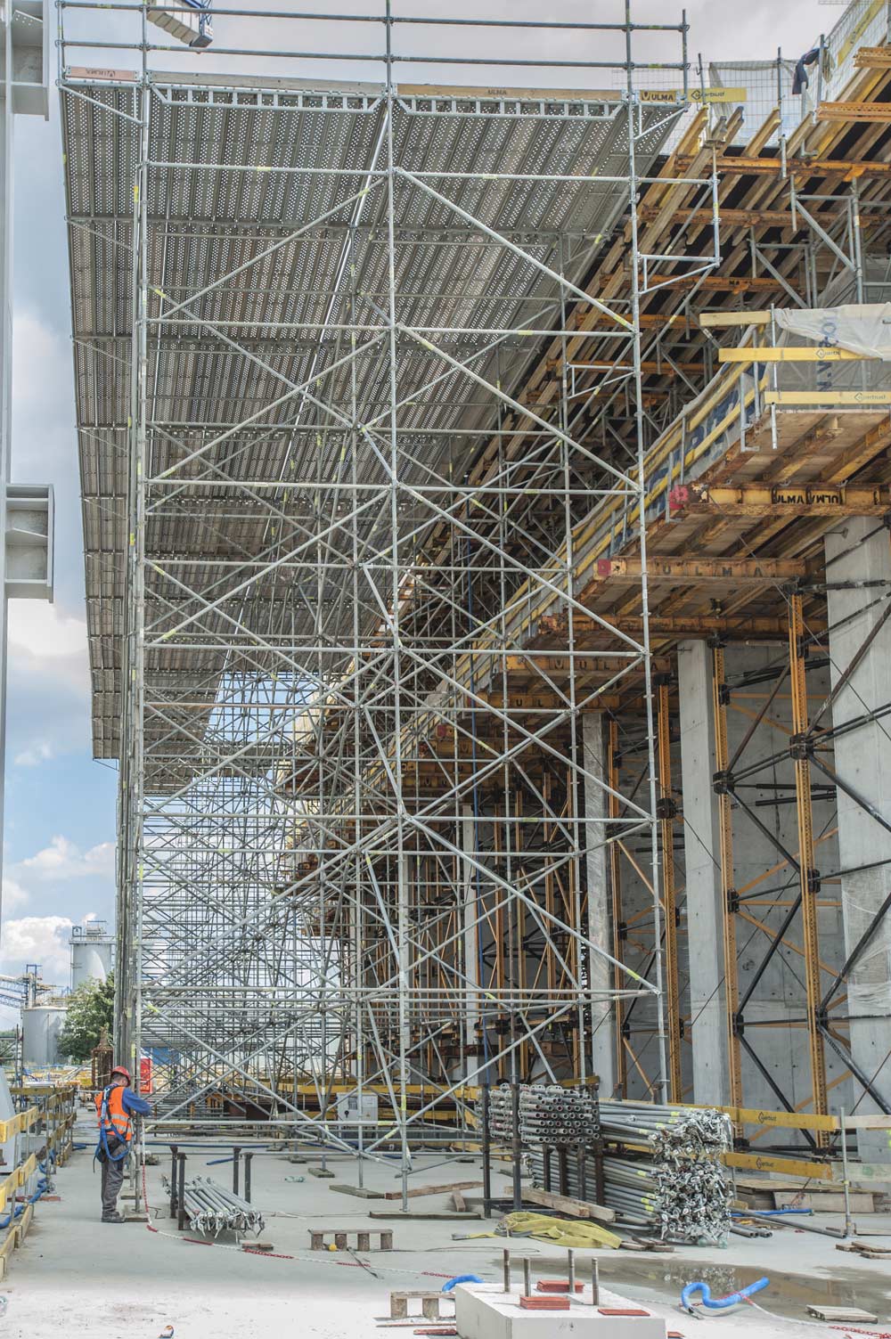 ULMA poskytla komplexní podporu pro tento projekt, včetně inženýrských řešení, systémů lešení a bednění a dohledu nad výstavbou elektrárny a centra elektrických a mechanických systémů.
