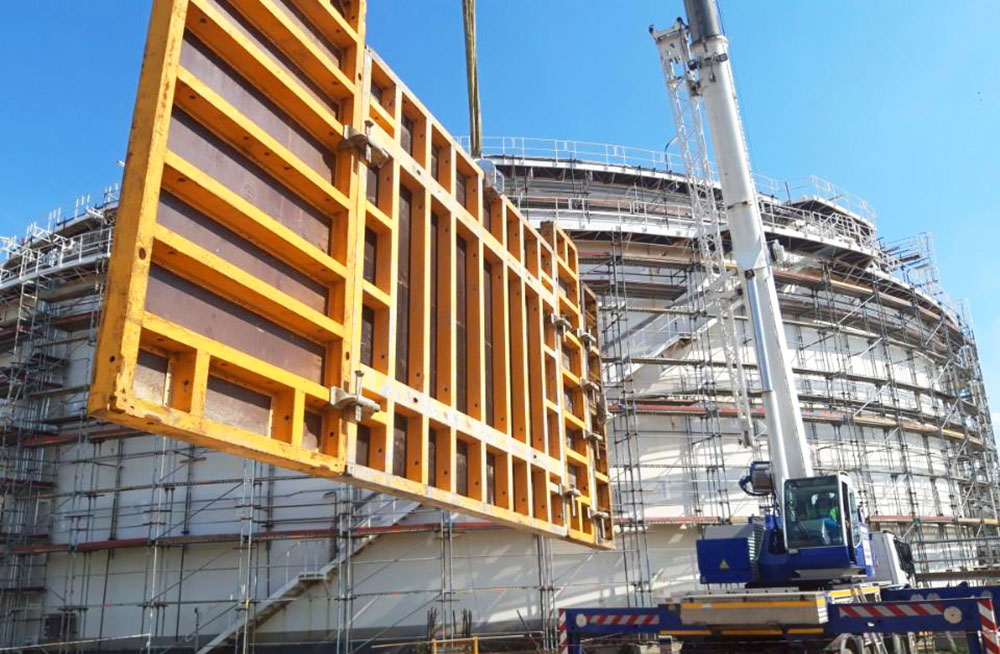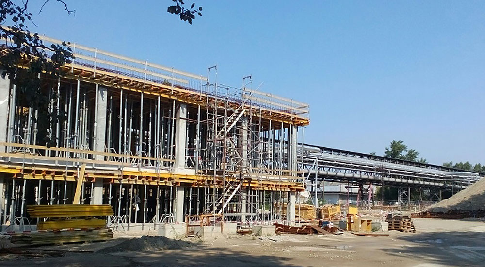 Stěny, sloupy, betonové kanály byly řešené ze systému ORMA 270 a 330. Celkem bylo dodáno cca 600 m2.