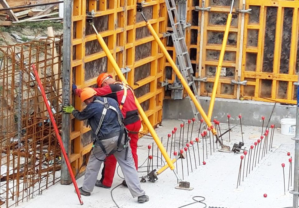 Základové pásy, základové patky a rošky byly řešené pomocí systému MIDI 150 a 300, kdy bylo dodáno cca 400 m2 bednění.