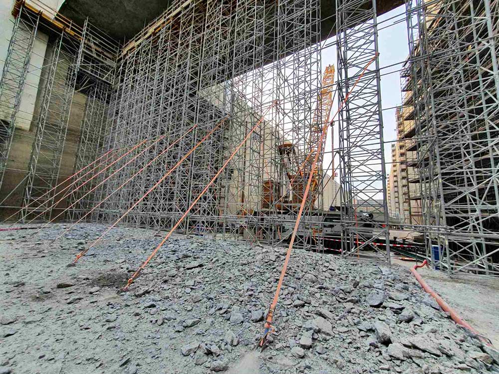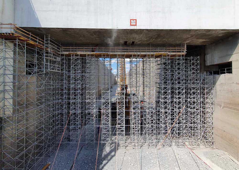 ULMA dodala řešení v podobě samostatně stojící podpěrné konstrukce ze systému T60, která sloužila pro pohyb bouracího stroje. Konstrukce se vyznačovala výškou více než 21m a poměrně malou šířkou jenom okolo 3,5m.
