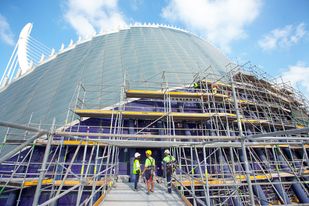 ULMA byla jediným dodavatelem lešení pro tento projekt. Práce spočívala v pokrytí celé budovy lešením BRIO, aby bylo možno zrekonstruovat více než 4 247 m² prostoru, exteriéru i interiéru. Eliptický tvar budovy se zakřivenými svahy s poloměry kolísajícími podle výšky představoval výzvu pro návrh lešení.