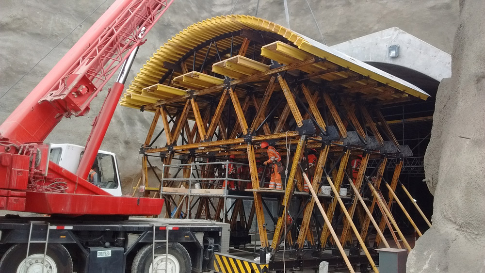 Bednění a podpěry klenby byly integrovány do téže struktury, stejně jako transportní konstrukce, která musela vydržet celou váhu a tlak betonáže. Spojení nosné struktury MK a MK bednění do jediného mobilního vozíku umožnilo dokončit 6 m dlouhé betonážní takty v pouhých 7 hodinách.