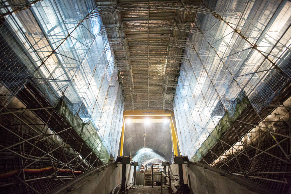 Pro armovací práce a opláštění stěn tunelů bylo využito lešení BRIO instalované na vozíku MK, který umožnil jeho průchod celým tunelem. Lešení posloužilo také jako podpůrná struktura. Stojí za zmínku, že jen v lešení BRIO jsme dodali více než 300 tun materiálu.