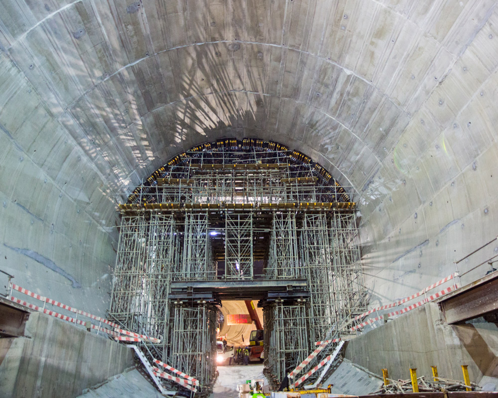 Pro tunely s průměrem nad 20 m byl použit systém ENKOFOM, který kombinuje univerzálnost s nosností podpůrných systémů ULMA - zde posloužil jako bednění a zároveň i jako podpěra.