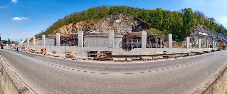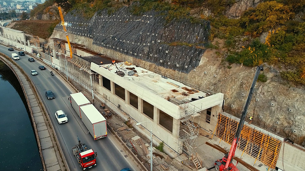 Společnost ULMA dodávala kompletní zastřešenou galerii nad silničním provozem, designovou lávku pro pěší přes čtyřproudou silnici, technologický objekt a velké množství opěrných zdí (1 - 5m).